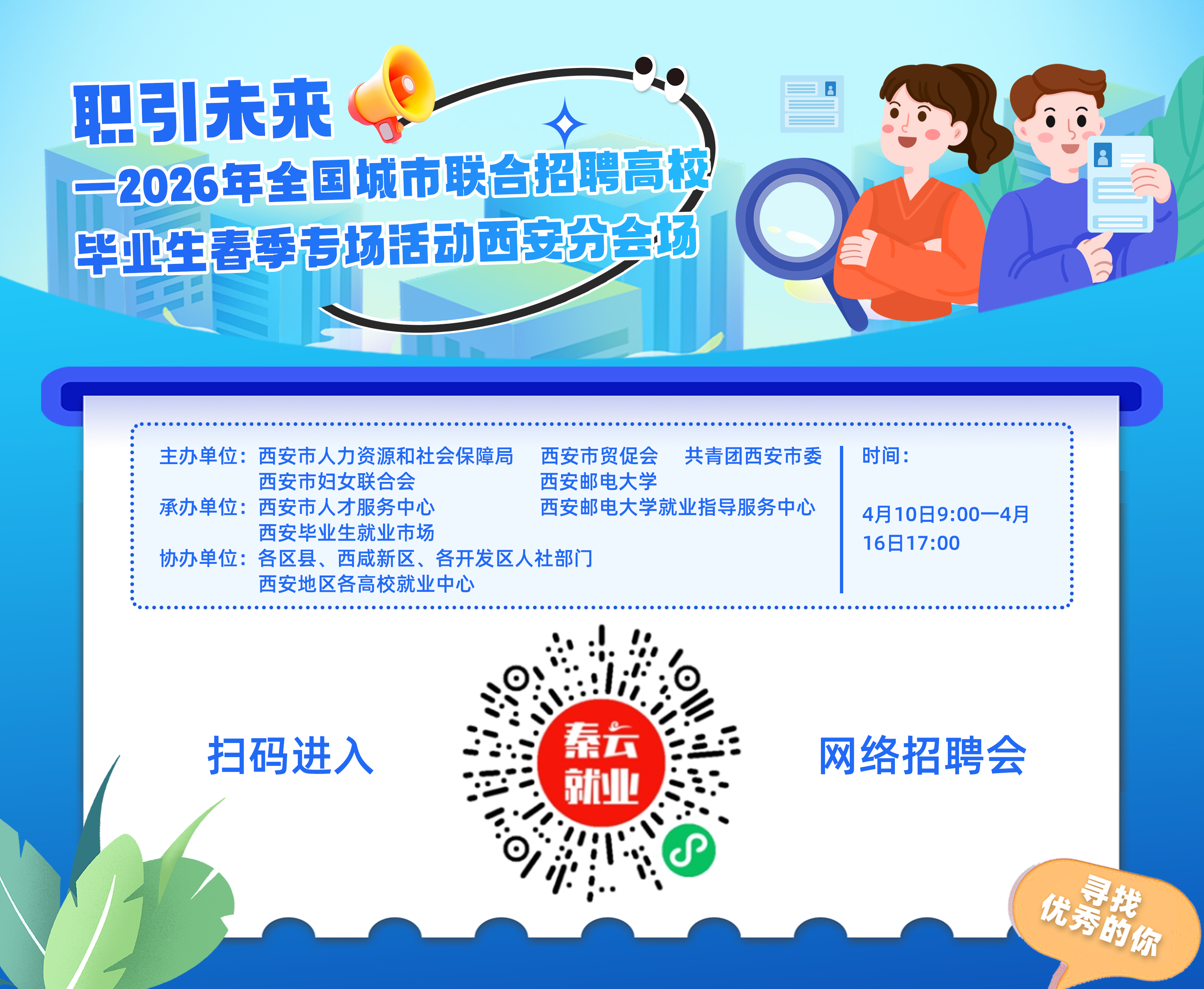 - 聚西部英才 筑就业桥梁2026年全国城市联合招聘西部地区青年人才交流会暨“乐业陕西‘就’在三秦”春招进校园活动圆满举行