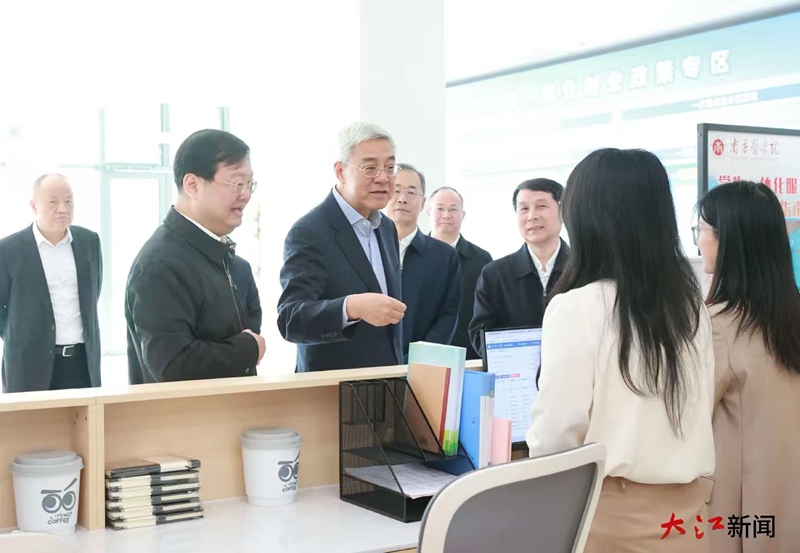 尹弘来到南昌医学院“一站式”学生服务中心,与就业辅导、心理咨询老师深入交流,鼓励老师们加强对学生的就业指导,帮助他们缓解就业焦虑,锚定专业志向,树立职业理想,扎实学好专业本领,不断提升就业能力。在“就业之家”,辅导老师正帮助大四毕业生选择职业,尹弘询问学生们专业所长、薪酬期望,鼓励学生立足所学所长,脚踏实地、奔赴热爱,既关注当下的职业选择,更着眼长远的发展空间,珍惜工作岗位,不断积累成长。田径场上,“链聚英才·强业兴赣”医药产业链专场招聘会,吸引了190多家医药企业和单位招贤。尹弘与招聘人员、毕业生深入交流,希望用好校园招聘会这个平台,拿出更多有竞争力、有成长性的岗位,切实让毕业生感知社会需求、实现职业理想。