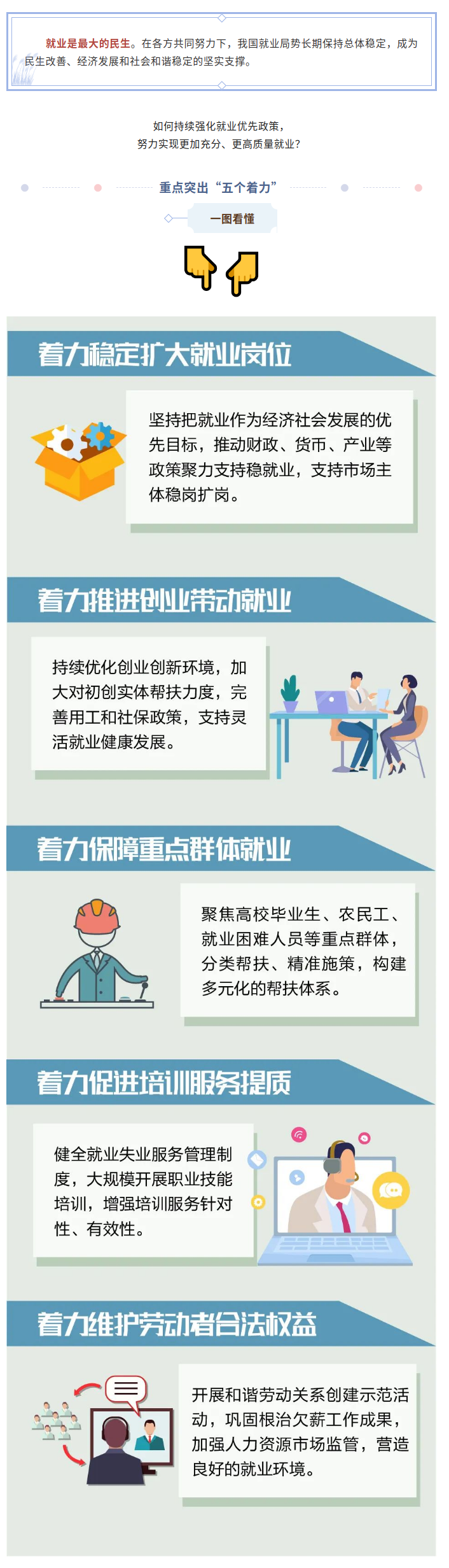 五个着力,实现更加充分、更高质量就业!一图看懂
