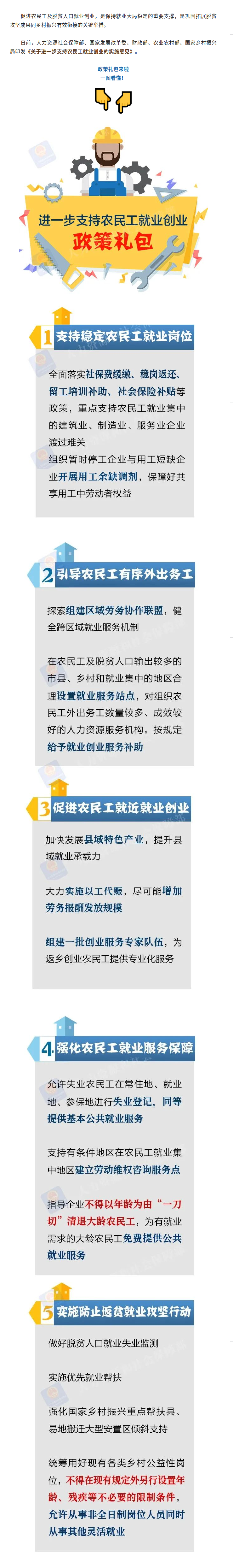 进一步支持农民工就业创业!政策礼包,一图看懂