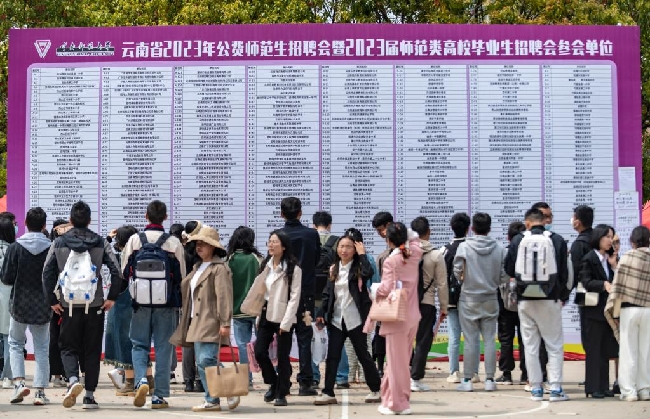 3月16日,求职者在云南师范大学呈贡主校区校园招聘会上了解招聘信息。新华社记者 陈欣波 摄