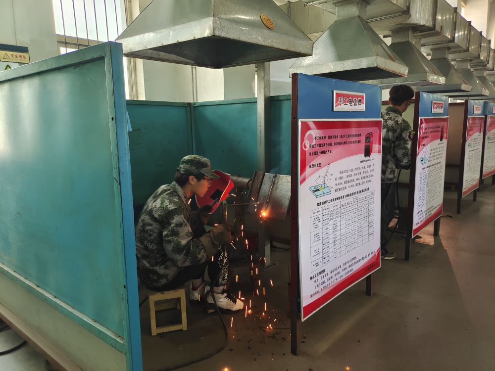 学生进行电焊工种风采展示。(新华社记者 谢建雯摄)