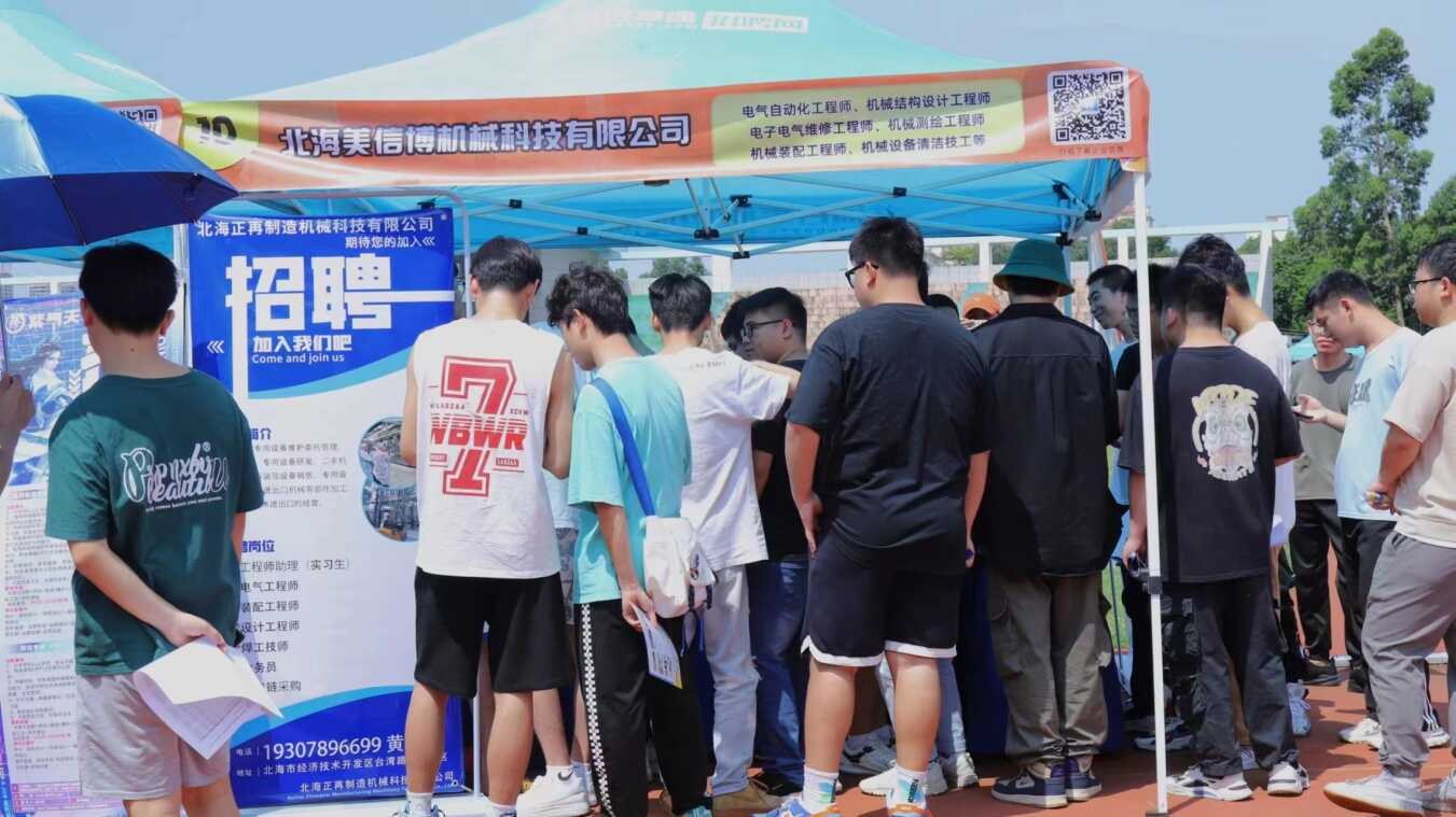 为深入贯彻党中央、国务院和自治区党委、政府关于稳就业决策部署,进一步健全就业公共服务体系,深入实施提升就业服务质量工程,促进高校毕业生高质量充分就业,北海市银海区人力资源和社会保障局将招聘会搬进了桂林电子科技大学(北海校区)的校园,为企业和毕业生搭建双向选择的平台,进一步加强校企合作,着力为北海引进优质人才、促进本地就业。本次招聘会规模大、范围广,共有入场招聘企业102家,提供就业岗位2746个,涵盖工程师、IT技术员、广告设计、机器人编程、市场营销及策划、电子商务运营等与桂林电子科技大学学生专业较匹配的岗位。当天进场求职人数约375人。除了招聘企业外,本次招聘会特别设置了机关事业单位专区,银海区社保中心、医保中心、退役军人事务局等单位均在现场宣传相关行业政策。