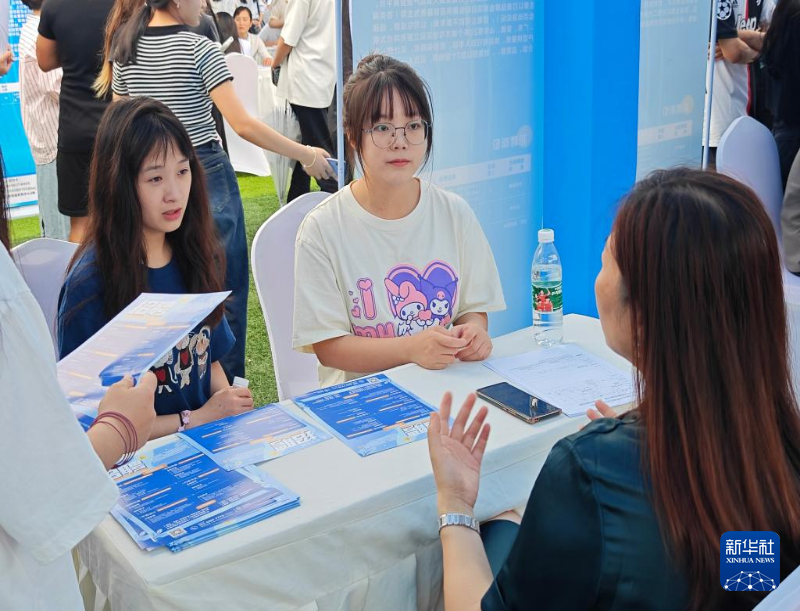 图为6月14日,四川省宜宾市举办的招聘会上,高校毕业生与企业招聘负责人交流。新华社记者陈健 摄
