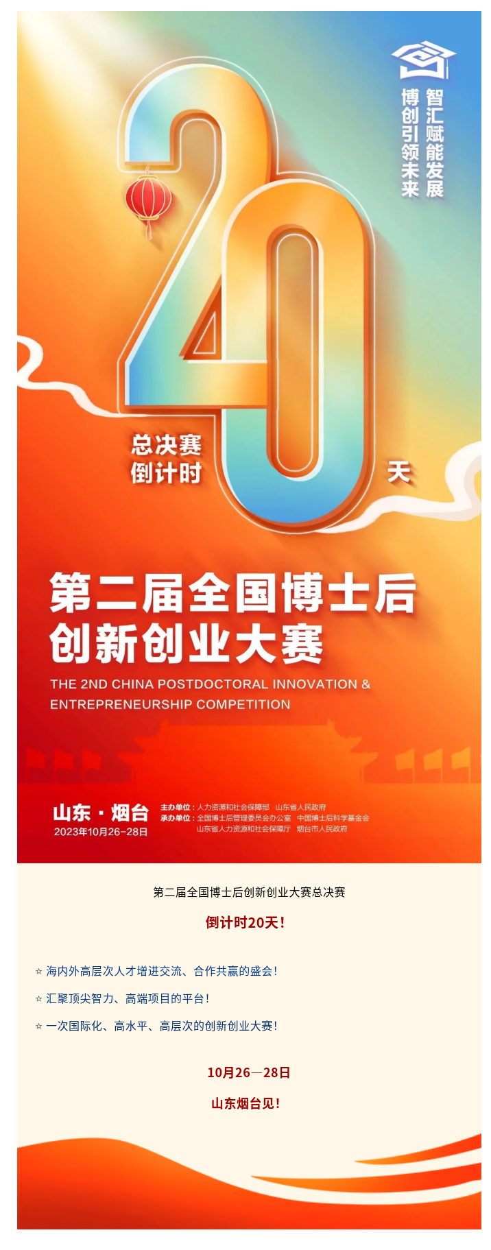 第二届全国博士后创新创业大赛总决赛倒计时20天!