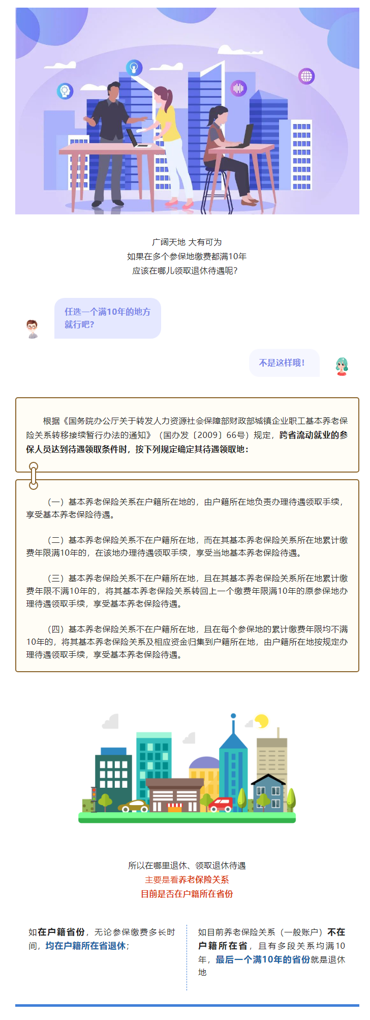 在多个参保地缴费都满10年,在哪儿领取退休待遇?