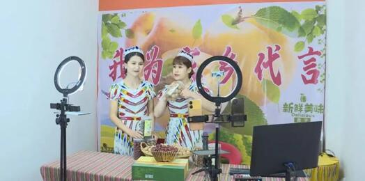 近日,记者在阿瓦提县刀郎众创空间看到,直播间的主播热依拉•艾山正在与同事进行农产品直播,介绍本地特色的纸皮核桃及红枣。热依拉•艾山大学毕业后,便选择回到家乡从事主播行业,通过“电商+直播”的新模式,推介销售本地特色农产品。