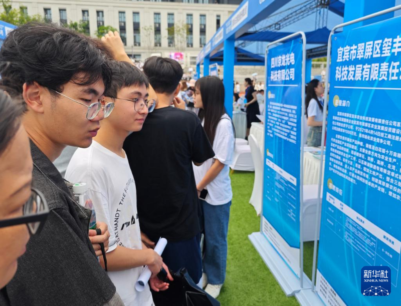 图为6月14日,高校毕业生在四川省宜宾市举办的招聘会上求职。新华社记者 陈健 摄