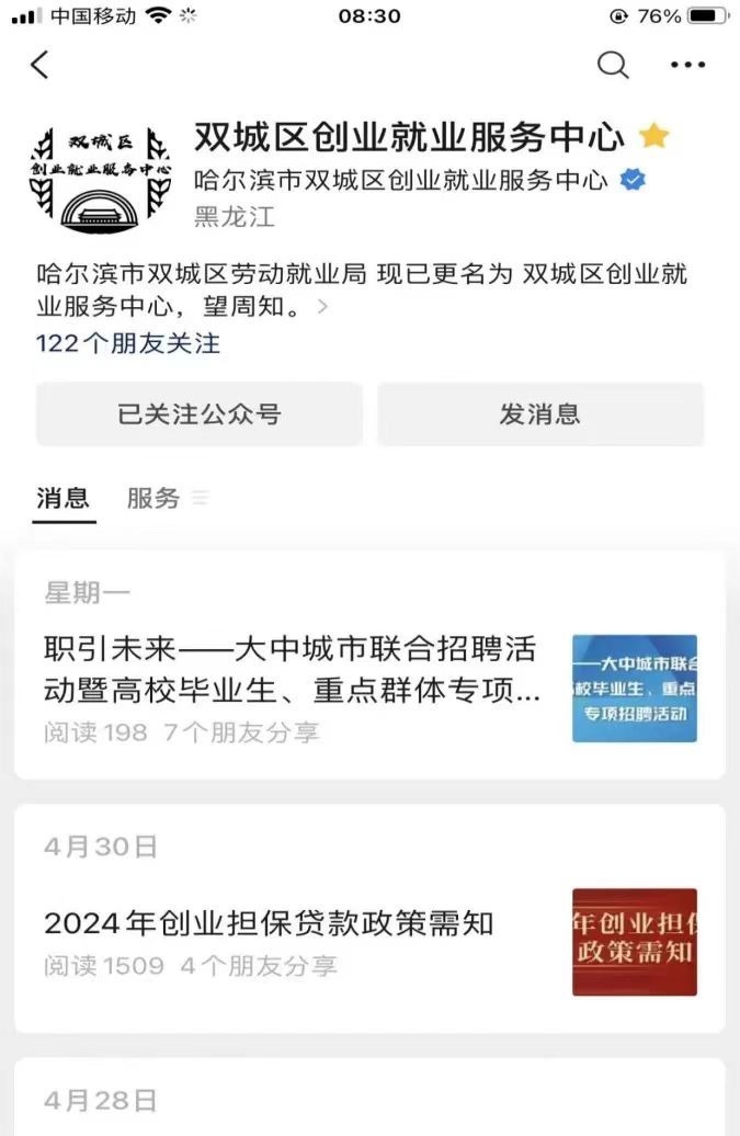 下一步,双城区创业就业服务中心将继续加强公共就业服务力度,主动服务企业,了解企业用工需求,加大力度开展就业专项招聘活动。同时,通过“双城区创业就业服务中心”公众号、乡镇基层劳动保障平台、微信工作群等线上平台实时发布企业用工信息,促进双城区高校毕业生、贫困劳动力、农民工、就业困难人员等重点人群实现就业。
