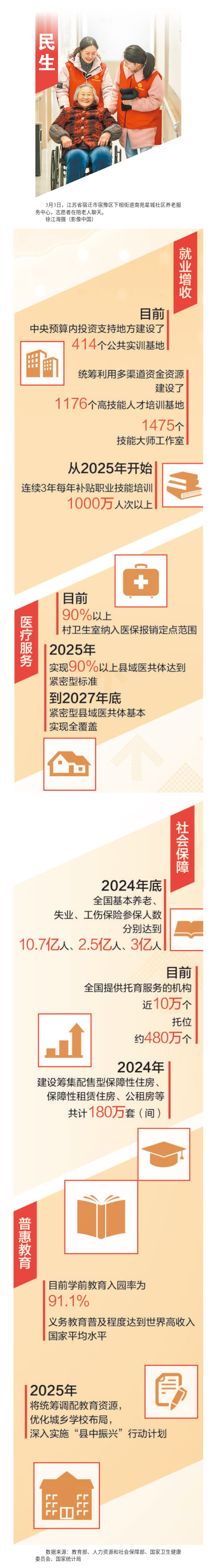 “在加强基础性、普惠性、兜底性民生建设和解决群众急难愁盼问题上多办实事,在健全社会保障体系、增强基本公共服务均衡性可及性上再上水平。”