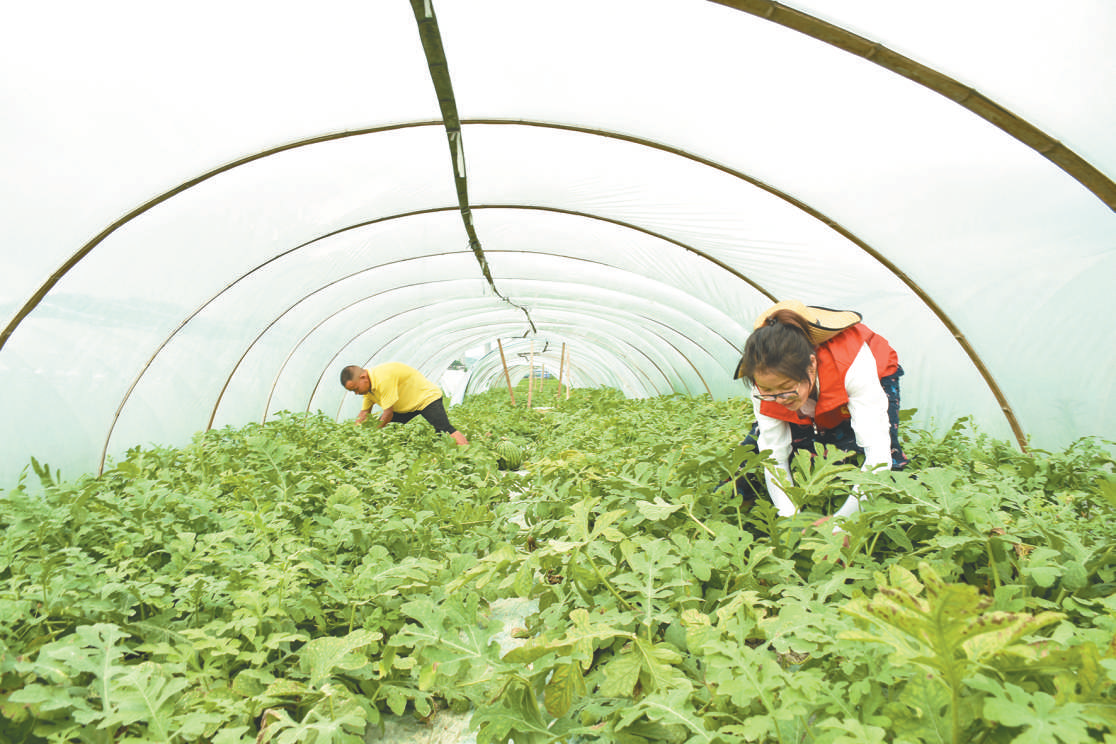 今年以来,贵州天柱县深入推进“我为群众办实事”实践活动,积极组织党员干部深入基层一线,解决群众急难愁盼问题。图为近日,在凤城街道和平村西瓜种植基地,党员志愿者正在帮助农户采摘西瓜。