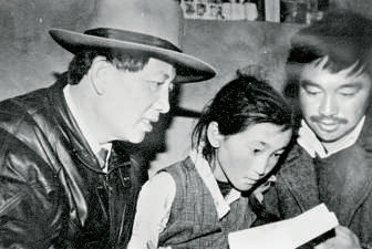 在西藏工作期间,孔繁森(左)在辅导藏族儿童读书。新华社发